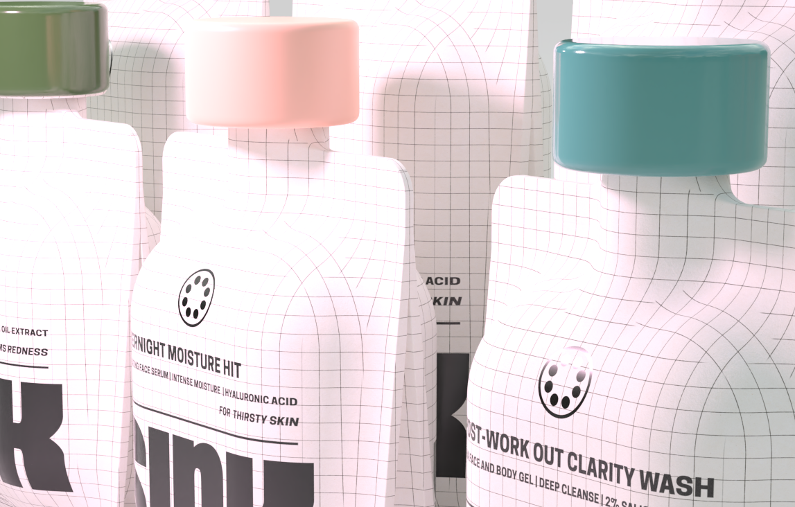 Naming, brand identity and packaging, establishing a calm, confident visual system for a fresh, Gen Alpha skincare brand across key touchpoints.